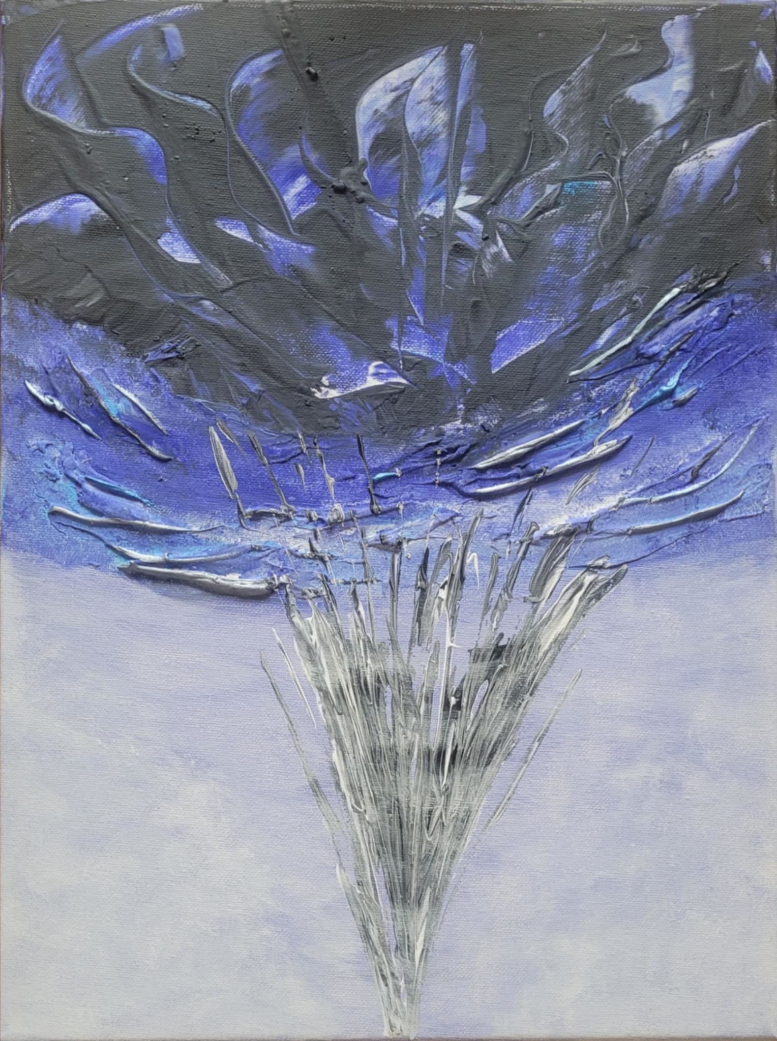 Storm Danse – Peinture acrylique au pinceau, couteau et éponge sur toile – Abstrait évoquant la danse d’une tempête – 30x40cm